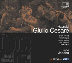 quand l'opéra Giulio Cesare est donné devant le public du king's theatre, la renommée de Haendel est largement assise à Londres où le public ne cesse de le fêter depuis son Rinaldo de 1711. Le succès de cet opéra de maturité est immédiat. Tout au long du 20ème siècle il est resté célébré comme une oeuvre majeure. Mais a-t-on jamais gouté aux tribulations du fameux empereur avec davantage de plaisir et de joie qu'à l'écoute de ce disque qui a fait figure de référénce des sa parution? Tous les atouts sont réunis à commencer par une distribution enchanteresse. Le rôle titre redoutable et exigeant est tenu par Jennifer Larmore. Audace bienvenue de jacobs à une époque où le public encense un peu vite des contre tenors sans souffle dont les minauderies agacent plus qu'elles ne parviennent à séduire. Larmore campe ici avec brio le personnage dans toute sa dualité sa complexité, être tour à tour blessé amoureux héroique et reste toujours crédible. Face à elle la Cleopatre de Barbara Schlick semble un peu en retrait. Réalisant des bach merveilleux elle ne donne sans doute pas assez d'épaisseur à un personnage qui n'est pas seulement une garce manipulatrice capricieuse. Derek lee Ragin dont on a pas toujours dit grand bien est ici à son affaire défendant avec conviction un ptolémée perfide et inquiétant.Divine Bernarda Fink qui rend toute sa noblesse à la grande figure tragique de Cornélia, peut on ecouter le "priva son d'ogni conforto" sans verser des larmes? On se permettra juste d'écorcher au passage Furio Zanasi qui en rajoute un peu dans l'aspect fruste et brutal, la voix un rien métallique manque de rondeur et ne sait pas se faire carressante quand elle le devrait ainsi le " tu sei il cor" au premier acte déclaration enflammée à Cornelia finit par devenir aussi grotesque que les gesticulations de Polyphème aupres de Galatée, dans la pastorale du même Haendel, à ceci près que le caractère bouffon du personnage était dans ce cas voulu par le compositeur. Qu'importe cette petite faiblesse elle n'est rien au regard du travail fabuleux accompli par le chef qui cisèle en véritable orfèvre le moindre récitatif. Le concerto koln est pour René jacobs un interlocuteur de premier ordre engagé et flamboyant, il restitue un haendel âpre, charnel, plus qu'un accompagnateur il fait corps avec les différents protagonnistes. On devine sans peine que l'enregistrement pour atteindre ce niveau d'excellence fait suite à bon nombre de représentations en concert... Cétait un temps pas si lointain où le disque n'était pas encore un simple objet commercial lancé au hasard dans les bacs des vendeurs.ce Jules César est une véritable déclaration d'amour au compositeur, l'aboutissement d'un travail d'équipe le fruit du labeur de véritables artistes touchants jusque dans leurs faiblesses, et ça, ça n'a pas de prix! Un témoignage à posséder absolument.