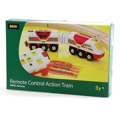 Locomotive télécommandée BRIO, qui fonctionne très bien au début (c'est pas une fusée!). Les piles s'usent assez rapidement. Même après les avoir changées, la petite locomotive perd de sa vivacité. Télécommande marche avant, marche arrière, et son, grâce à deux canaux (A et B) qui se règlent en parallèle avec un petit bouton. Les enfants à partir de 3 ou 4 ans y trouveront leur compte quand même ! Rapport qualité prix: un peu cher !
