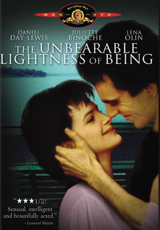 Film magnifique à voir absolument en VO pour avoir le plaisir d'entendre Tomas, chirurgien volage (D.D. Lewis, merveilleux dans tous les registres) répéter tout au long du film "Take off your clothes..." chaque fois qu'une nouvelle conquête se présente. Et puis il y a la beauté des images: scènes avec le miroir renversé ou cassé chez et avec Sabina, une jeune artiste libre et libérée (Lena Olin très belle, très "à fleur de peau"), scènes au bord d'un lac... et puis il y a des scènes érotiques drôles ou magnifiques... et puis il y a la grande histoire dans la petite histoire avec intégration de documents d'archives... et puis il y a les retrouvailles entre Sabina et Tomas puis entre Tomas et Teresa qui sont superbement interprétées... et puis il y l'amour qui lie Tomas et Teresa (Juliette Binoche extraordinaire de naïveté, de simplicité) et qui est plus fort que tout. Et puis, pour accompagner tout cela, il y a la musique de Janacek qui colle aux images comme une seconde peau. Bref un très beau film à voir et à revoir.
