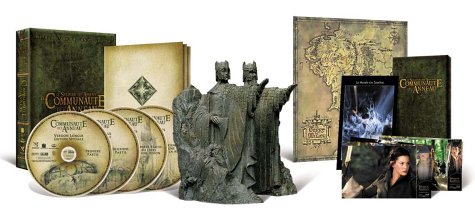 Ce coffret est sans aucun doute LE coffret a acheter d'urgence si ce n'est deja fait! En plus du film qui lui meme est deja exeptionel, les deux statuettes font de jolies decorations et souvenirs de ce premier volet de la trilogie. La carte du millieu vous aide a vous reperer, vous pouvez ainsi suivre la trace de frodon et ses amis, les cartes, elles, vous rappellent les scenes phares du film et il y a bien sur les 4dvd! tout d'abord, l'histoire avec les bonus et surtout, pendant tout le film, les commentaires des acteurs et de toute l'equipe du tournage, de quoi vous plongez completement dans l'univers de l'anneau magique! Aucun deffaut a signaler, on a penser a tout, a parler des effets speciaux, des acteurs, du producteur peter jackson, de l'adaption de l'oeuvre de tolkien au cinema et surtou de cet ecrivain a qui revient une grande part du merite! un grand bravo pour cet article!