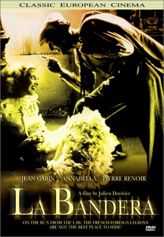 "La Bandera" est un drame de Julien Duvivier (1935-1h40) en noir et blancScénario de Julien Duvivier, Charles Spaak et Pierre Dumarchais (son roman sous le nom de Mac Orlan).Photo de Jules Kruger. Musique de Roland Manuel et Jean Wiener.avec : Annabelle (Aischa la Slaoui), Jean Gabin (Pierre Gilieth), Robert Le Vigan (Fernando Lucas), Raymond Aimos (Marcel Mulot), Pierre Renoir (Capitaine Weller), Gaston Modot (Le légionnaire Muller), Margo Lion (Planche-à-Pain), Charles Grandval (Le ségovien), Reine Paulet (Rosita), Viviane Romance...L'Histoire : Après avoir tué Morin, le mari de sa maitresse, rue Saint-Vincent à Montmartre, Pierre Gilieth, s'enfuit et quitte la France pour l'Espagne. A Barcelone, il se fait voler son argent et ses papiers. Sans ressources, il passe devant les bureaux de recrutement de la Légion étrangère espagnole et décide de s'engager. Lors de la visite médicale d'incorporation, il fait la connaissance de deux compatriotes, Marcel Mulot (Raymond Aimos) et Fernando Lucas (Robert Le Vigan). Affectés tous les trois à la 3e Bandera, ils sont envoyés dans le rif marocain pour combattre une guérilla locale...Julien Duvivier tourne une bonne partie du film en décors naturels notamment la seconde partie qui se déroule dans le Sahara Marocain qui était, à cette époque, sous protectorat espagnol. Les années 1930 produisent quelques films qui se passent, dans la Légion étrangère, espagnole pour « La Bandera » mais française pour quelques autres : « Caeurs brûlés » en 1931 de Joseph Von Sternberg avec Gary Cooper et Marlène Dietrich, en 1934 l`ennuyeux et long « Le grand jeu » de Jacques Feyder avec Pierre Richard-Willm et Marie Bell et en 1939 encore Gary Cooper sous le képi blanc dans « Beau geste » de William A. Wellman.Duvivier trouve en Gabin son interprète favori en 1934 lorsqu'il le fait tourner dans "Maria Chapdelaine" avec Madeleine Renaud. Puis après "La Bandera", en 1935, ce sera "Pépé le Moko" en 1937. Julien Duvivier le pessimiste trouve dans la romantique histoire de Pierre Mac Orlan l'occasion d'imposer son style précis et efficace. L'atmosphère du livre est bien rendue et, sous la direction du réalisateur, Jean Gabin prend son rôle au sérieux, surtout qu'il forme avec Raymond Aimos et Robert Le Vigan, une fine équipe. Certes le film a vieillit mais c'est un plaisir de retrouver les décors et les ambiances de ces années d'avant guerre.Un film qui devrait plaire aux romantiques et aux fans de Jean Gabin. Malgré son âge, ce film se laisse voir avec un certain plaisir. Je note 3 étoiles 1/2Pour ceux qui veulent connaitre la bibliographie parue sur le réalisateur et les comédiens, voir Wilkipedia (entre autres) sur internet et sur Amazon pour Julien Duvivier : "Julien Duvivier, 50 ans de cinéma" de Hubert Niogret. "Julien Duvivier, le mal aimant du cinéma français volume1 (1896 - 1940)" de Eric Bonnefille, "Julien Duvivier, le mal aimant du cinéma français Volume 2 (1940 - 1967)" de Eric Bonnefille, "Julien Duvivier" de Yves Desrichard etc.