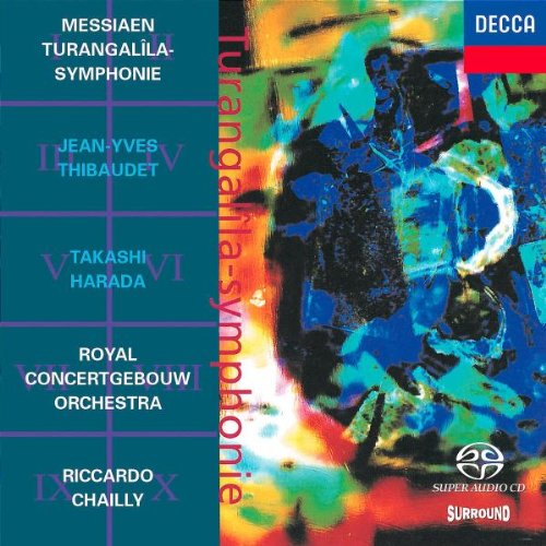 La "Turangalîla-Symphonie" reste la plus flamboyante manifestation de la rhétorique musicale et des sources d'inspiration d'Olivier Messiaen (1908-1992), qui recourt au large effectif orchestral (additionné du piano et des ondes Martenot) pour illustrer cet « hymne à la joie ».Quatre thèmes principaux s'y mêlent aux chants d'oiseaux stylisés, et à de savants traitements rythmiques inspirés du théâtre, pour exprimer cette fresque allégorique parmi les plus vastes, puissantes et originales du répertoire contemporain.Commandée par Serge Koussevitzky et créée par Leonard Bernstein en décembre 1949 à Boston, cette oeuvre fut magistralement enregistrée par Seiji Ozawa à Toronto vingt ans plus tard pour RCA : un témoignage qui a longtemps fait figure d'étalon discographique.Marek Janowski (RCA) et Simon Rattle à Birmingham (Emi) apportèrent leur contribution marquante dans les années 1980, tandis que Myung-Whun Chung en octobre 1990 grava ce que le compositeur, présent lors des séances, qualifia désormais comme « la version de référence ».Captée en mars 1992 au Concertgebouw d'Amsterdam, l'interprétation de Riccardo Chailly se fondait sur la toute récente édition révisée, et profite de la splendide palette des musiciens néerlandais.Outre une impressionnante virtuosité, culminant dans la « joie du sang des étoiles » et l'exultant finale, la subtilité des nuances instrumentales et la délicatesse des jeux de timbres caractérisent cette approche coloriste.Grâce au chatoyant clavier de Thibaudet qui se fond finement à la trame orchestrale, la direction du maestro italien suggère cette alchimie du visuel et du sonore qui concourt à une perception synesthésique du langage de Messiaen, ici auréolé dans toute sa force poétique.